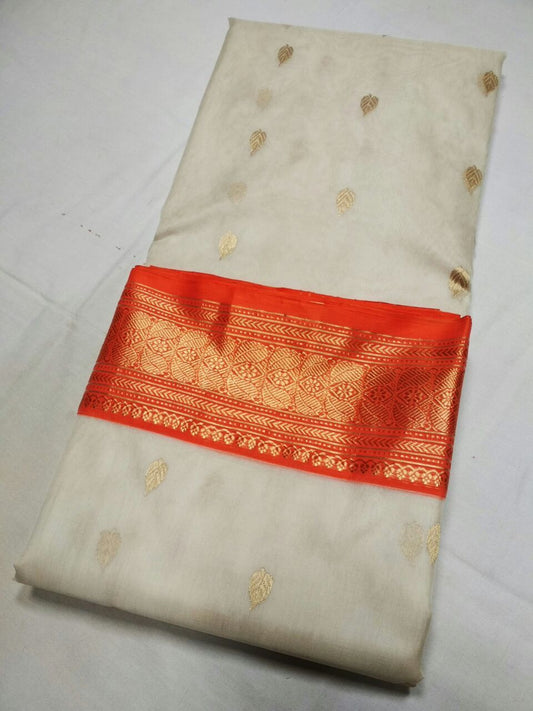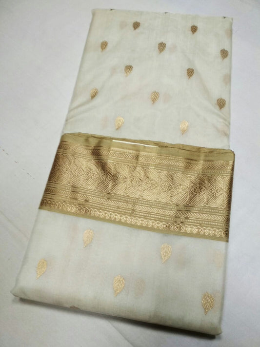 White with Golden Floral Designed Border Patola Silk Saree-PPSRE-036