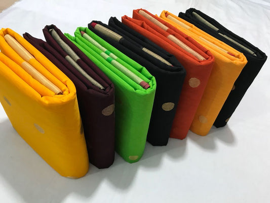 Yellow with Orange Dot Zari Border Chanderi Silk Saree