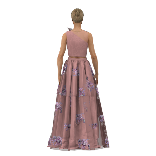 Asymmetrical Allure: One-Shoulder Netted Lehenga Choli - CWL021 (Stitching Service)
