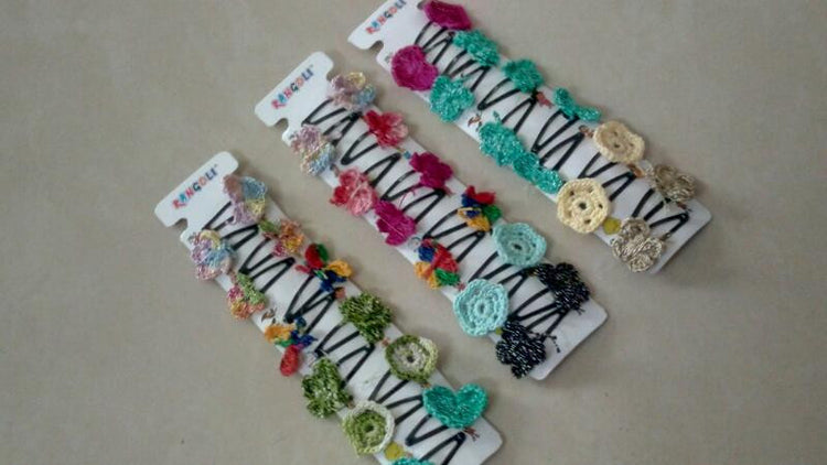 Leafy Multi Colored Flowers Crochet Hair Clip