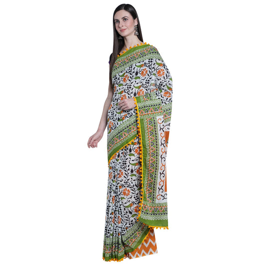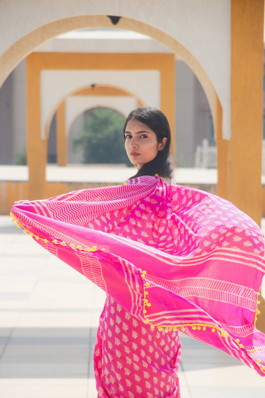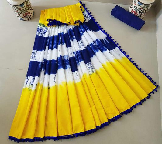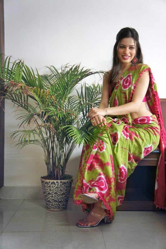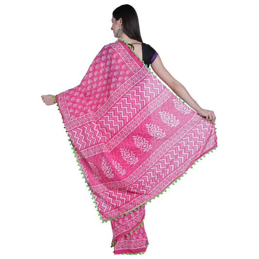 Candy Crush Ready-to-Wear Jaipuri Saree with Pom Pom Border - RWS013