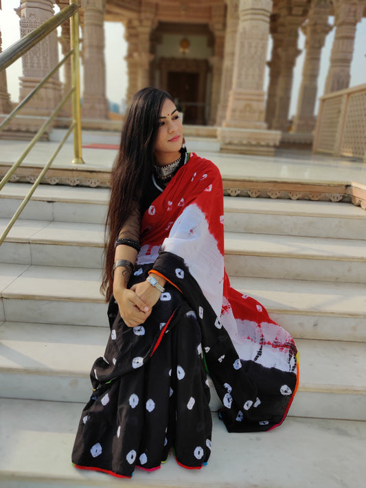 Multicoloured Bandhani Printed Cotton Saree-TCS050