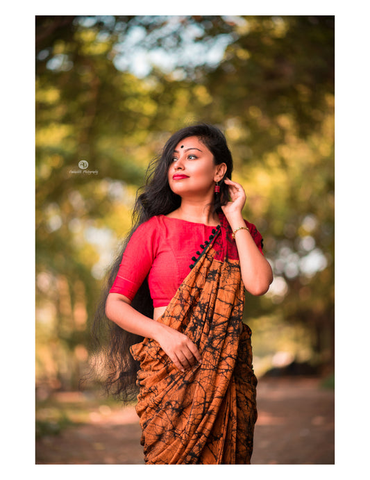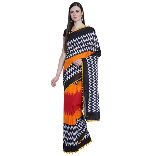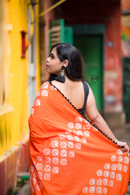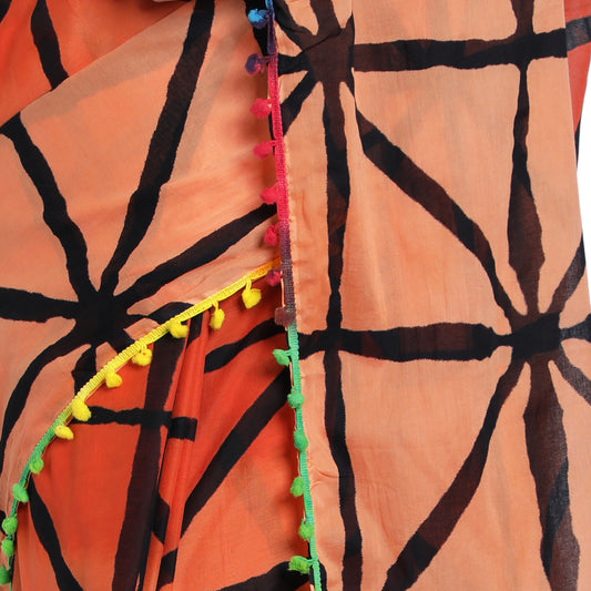 Orange Bliss Cotton Saree with Pom-Pom Border - TCS042