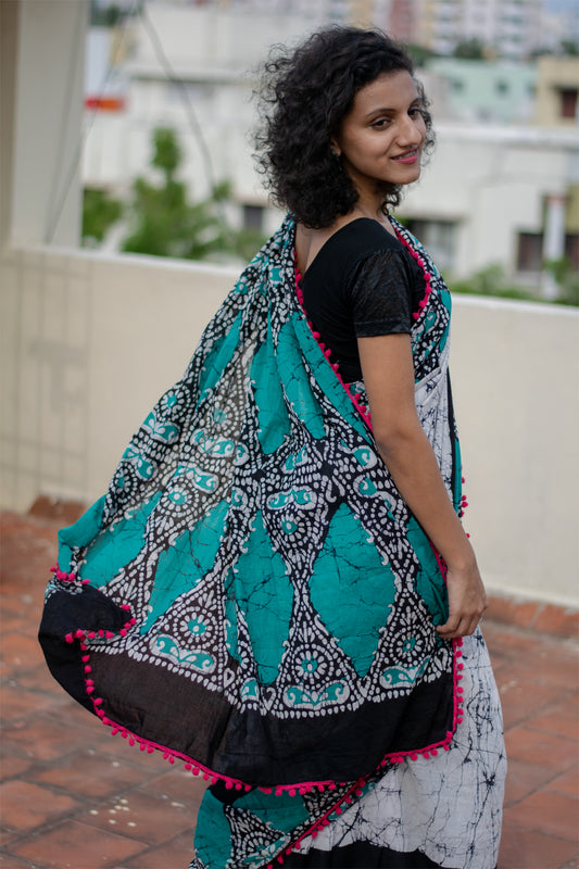 Waves of Tradition: The Jaipuri Cotton Saree with a ZigZag Twist - TCS016