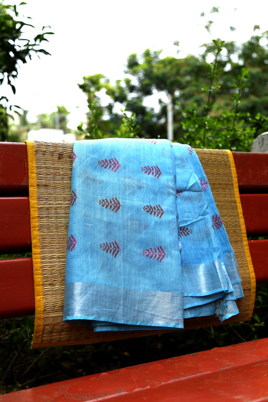Cyan Magic with Black Linen Saree (Blend)LNL001