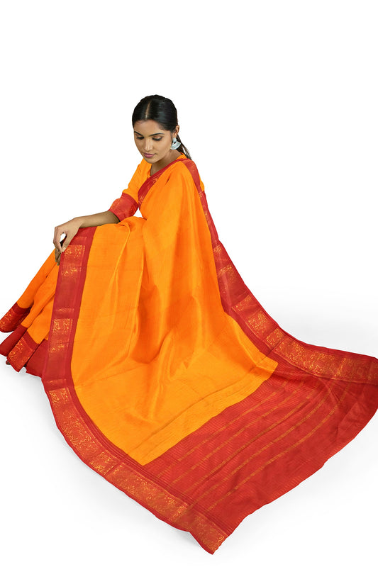 Yellow and Maroon Pure Cotton Saree CPC 006