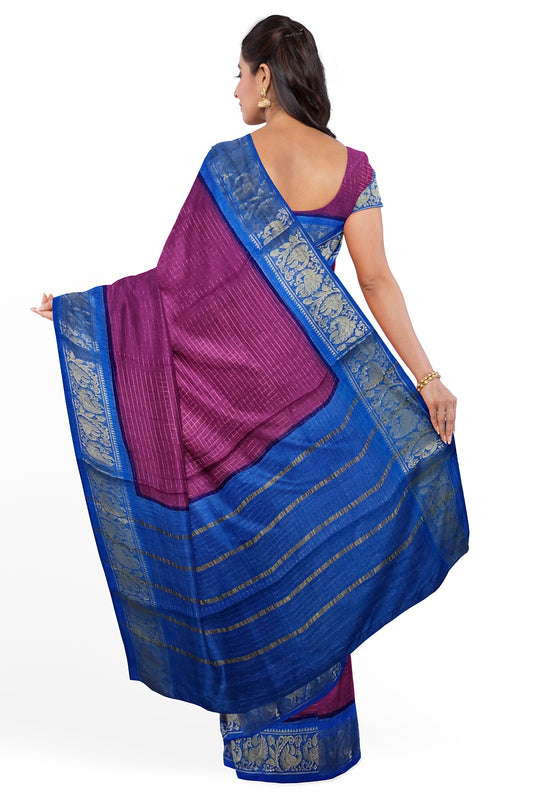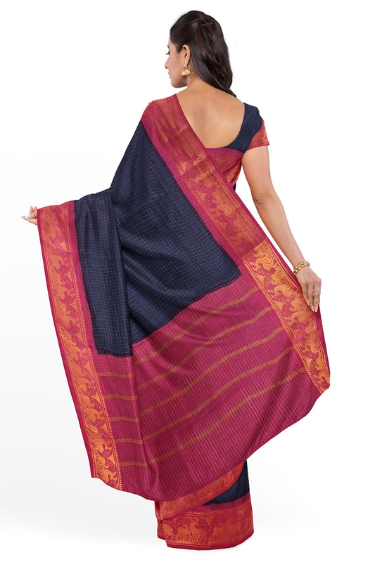 Ink Blue Pure Katan Silk Chanderi Saree with Pink Border