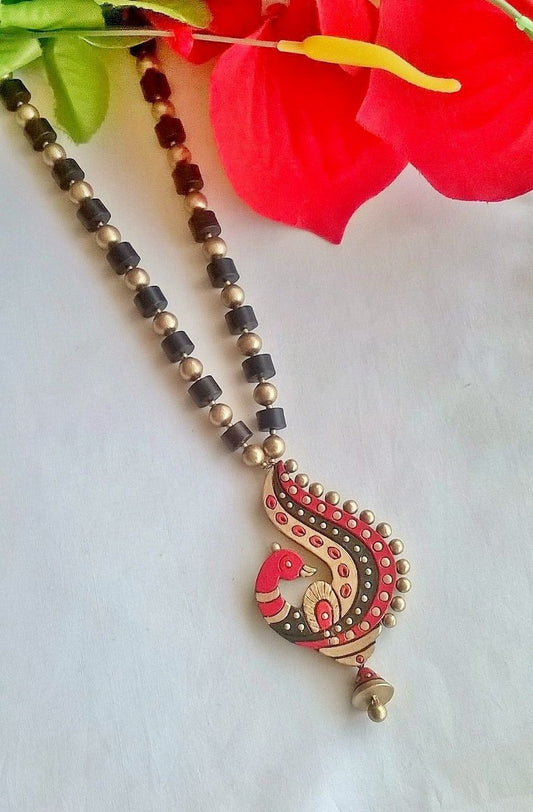 Golden and RoseBerry Loop Rounded Terracotta Pendant