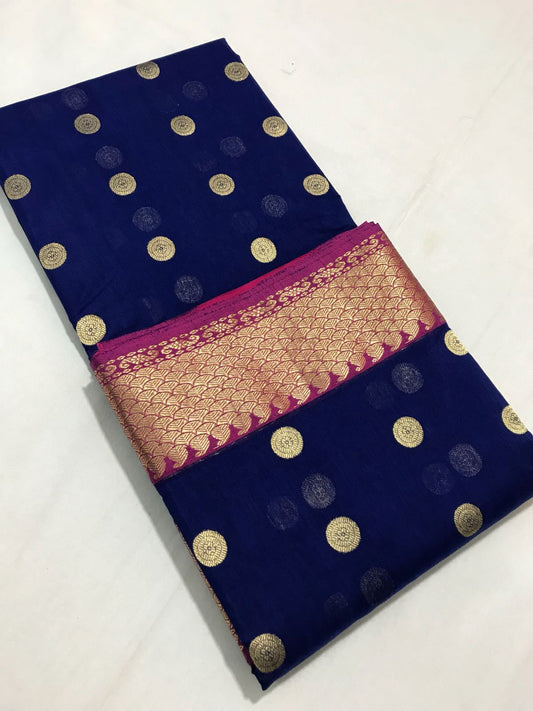 Blue with Pink Zari Border Chanderi Silk Saree