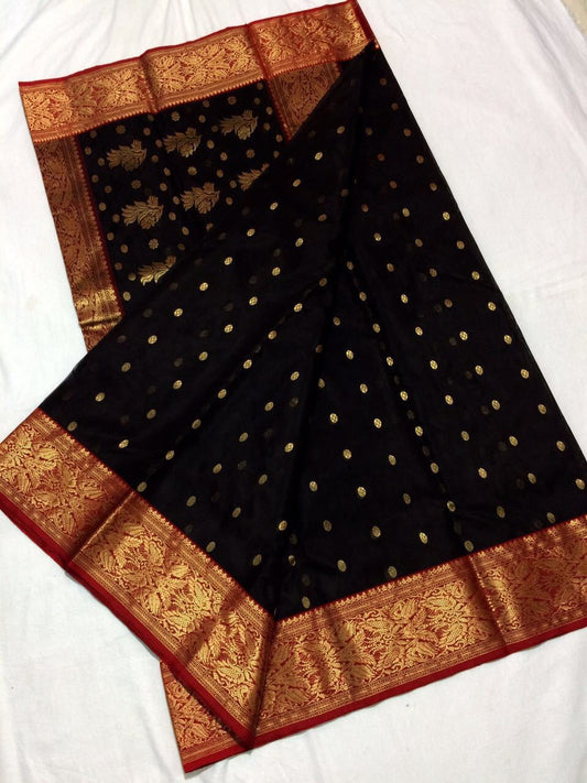 Black with Floral Designed Zari Border Chanderi Silk Saree