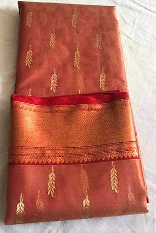 Modest Beige Chanderi Silk Saree with Red-Gold Border- CSH032