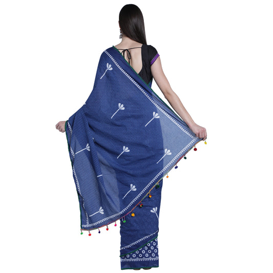 Cotton Saree with contrast Blue Border