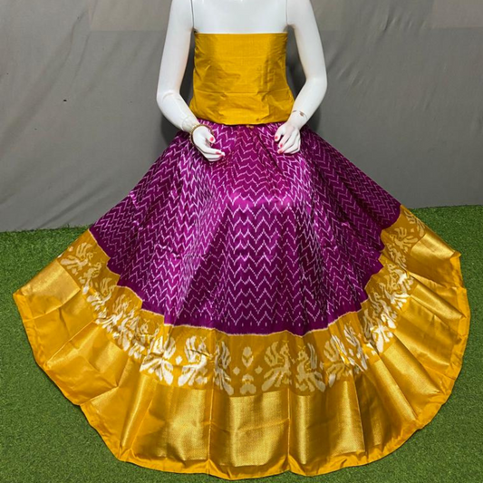 Graceful Delight - Ikkat Silk Unstitched Lehenga Choli - SIL001