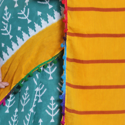 Sold outTeal and Yellow Cotton Saree-TCS018