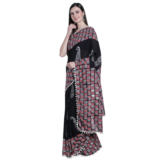 Black Cotton Saree with Trendy Border -TCS011