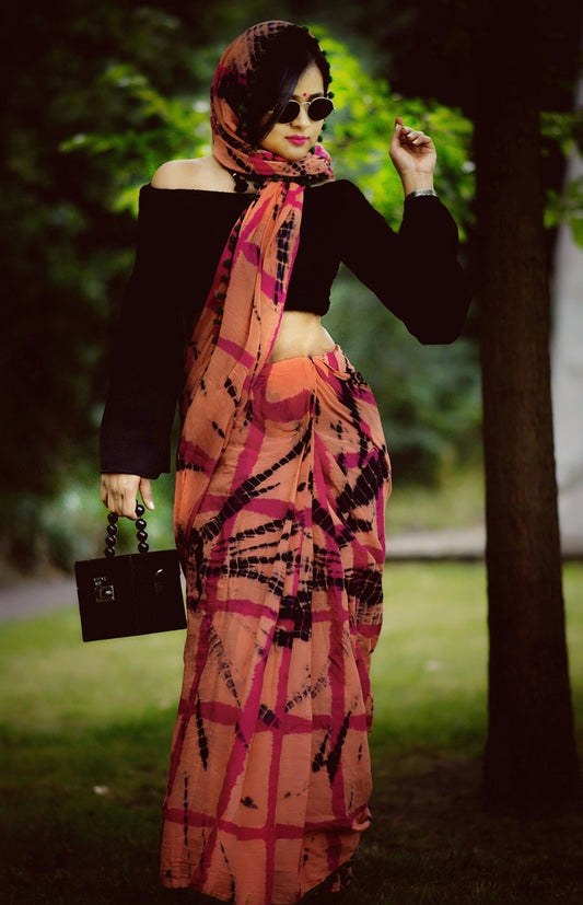 Sold outBlack and Orange Cotton Saree-TCS039