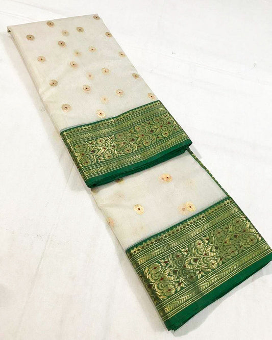 Pure Chanderi Silk Saree With Green Border- CSH010