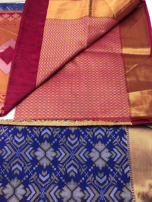 Navy Blue with Orange Border Banarasi Nylon Silk Saree