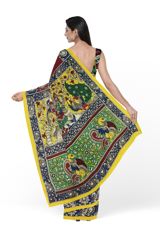 Muticolor Kalamkari Hand Painted Chennur Silk Saree-KPCHS-077
