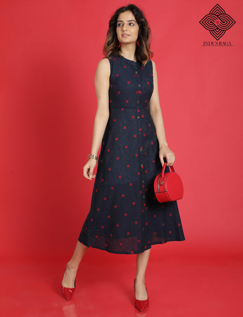 Darkblue with Red Madurai Sungudi Saree with Large Border