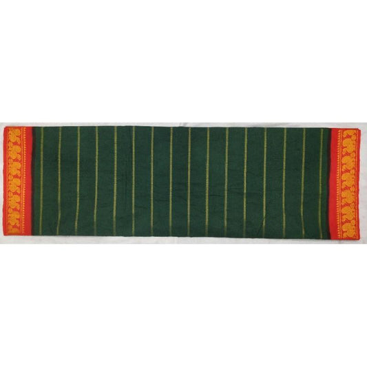 Dark Green With Orange Border Madurai Sungudi Saree- Double Side Jari Border Jari Check