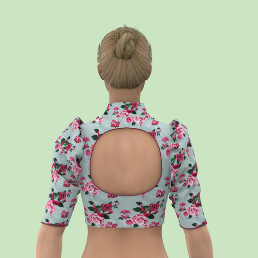 Floral Keyhole Mandarin Blouse-CBL068(Stitching Service)