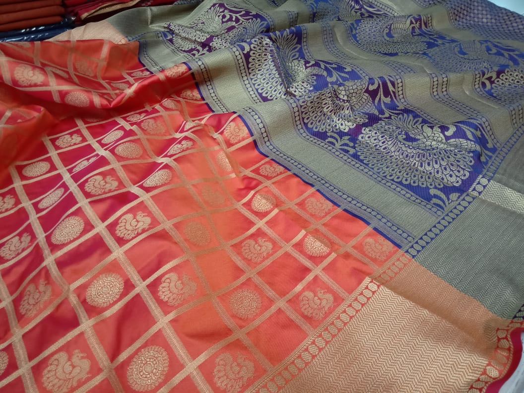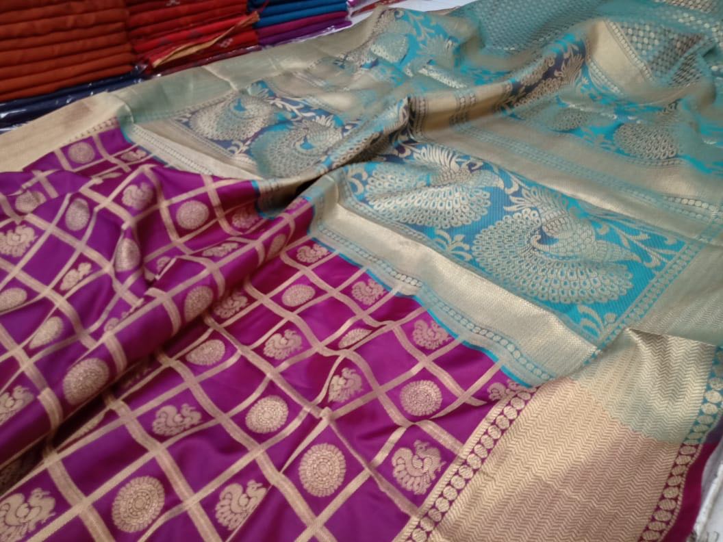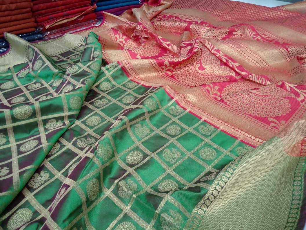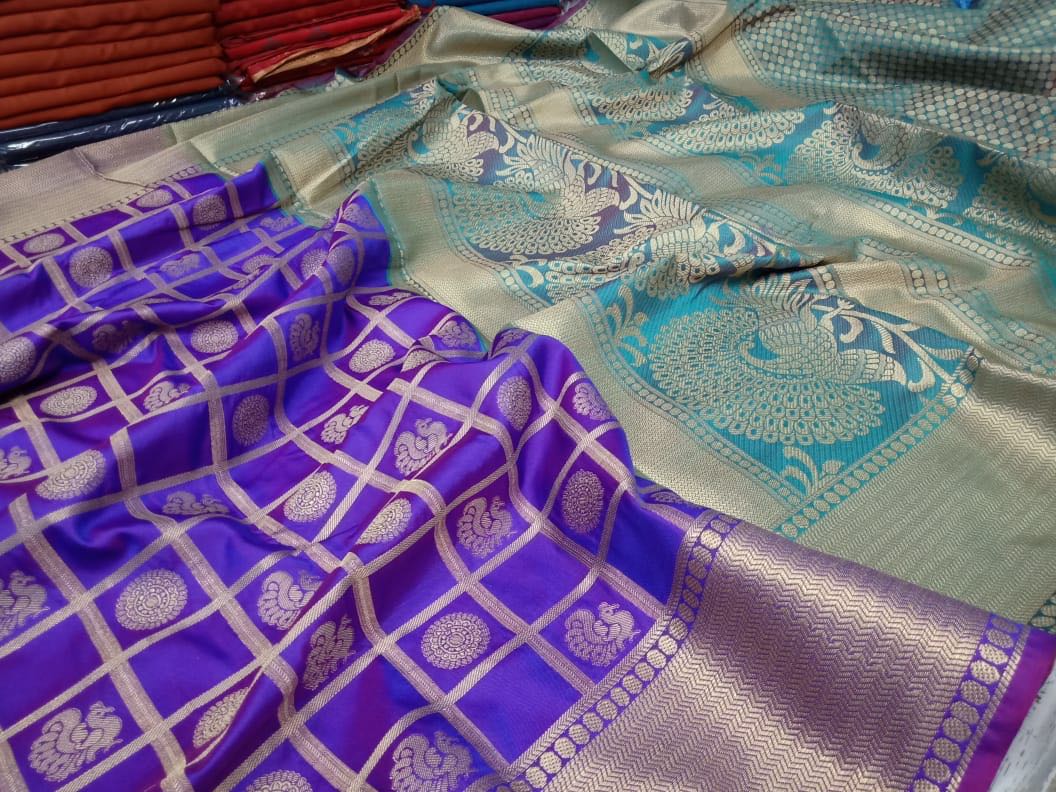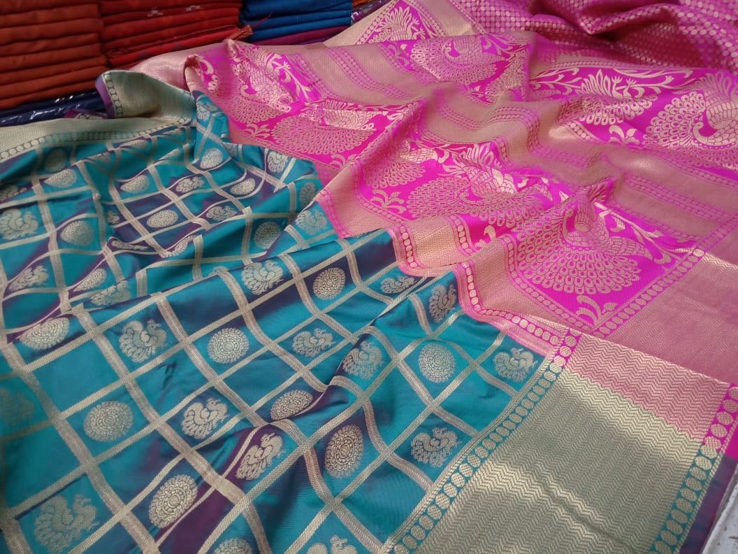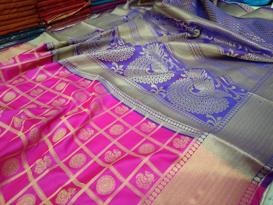Banglori Silk Saree With Rich Contrast Zari Pallu With Brocade Blouse