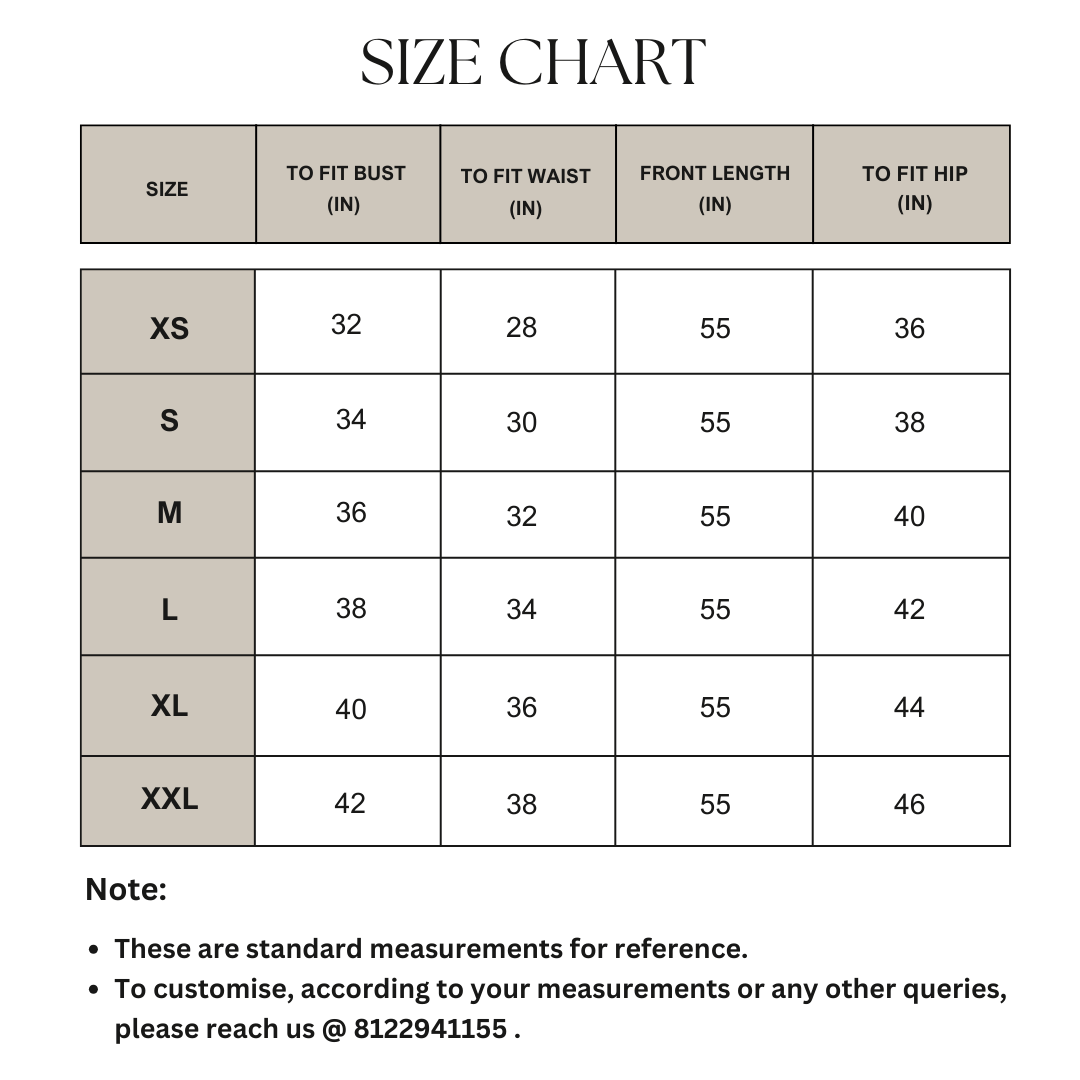 2. If you do not have the exact measurements or need assistance with customisation, please contact us at +91-8122941155 or info@fashionous.in
