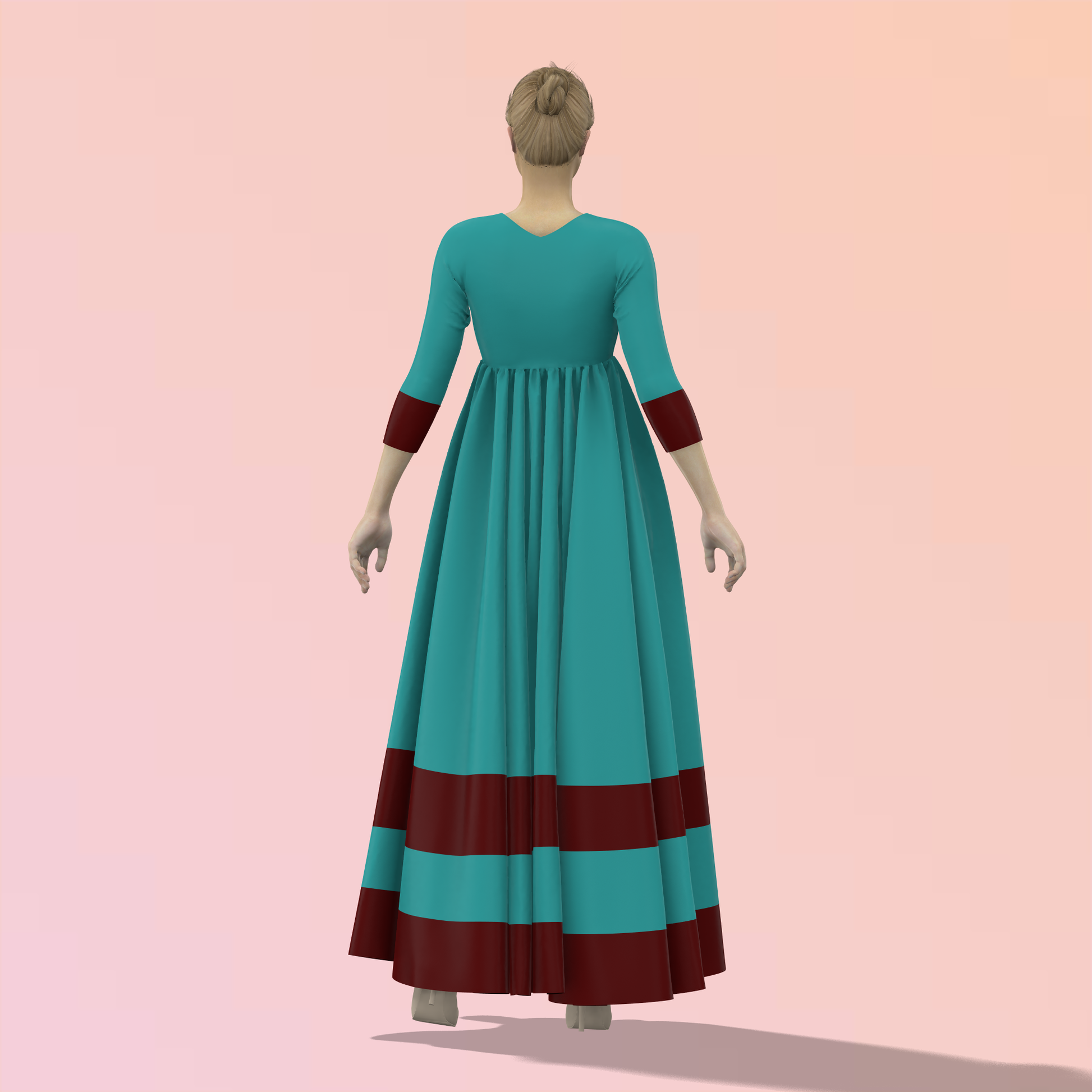 Back Bodice Pattern- Circular Pleated Dress with Double Border