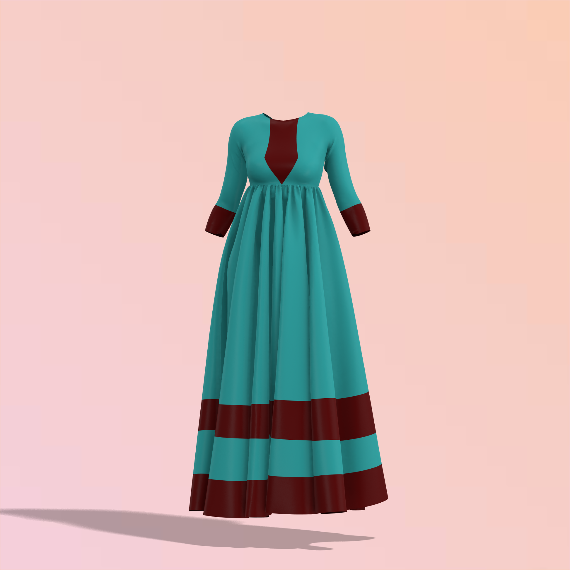 A sophisticated but fun look for any occasion, this custom-made dress is tailor-made to your size and taste! The long maxi dress features the perfect combination of circular pleats with double border on the front and back, a C-shaped neckline, and stylish 3/4th sleeves with a further border. Flaunt your curves in this attractive dress and make your fashion statement!