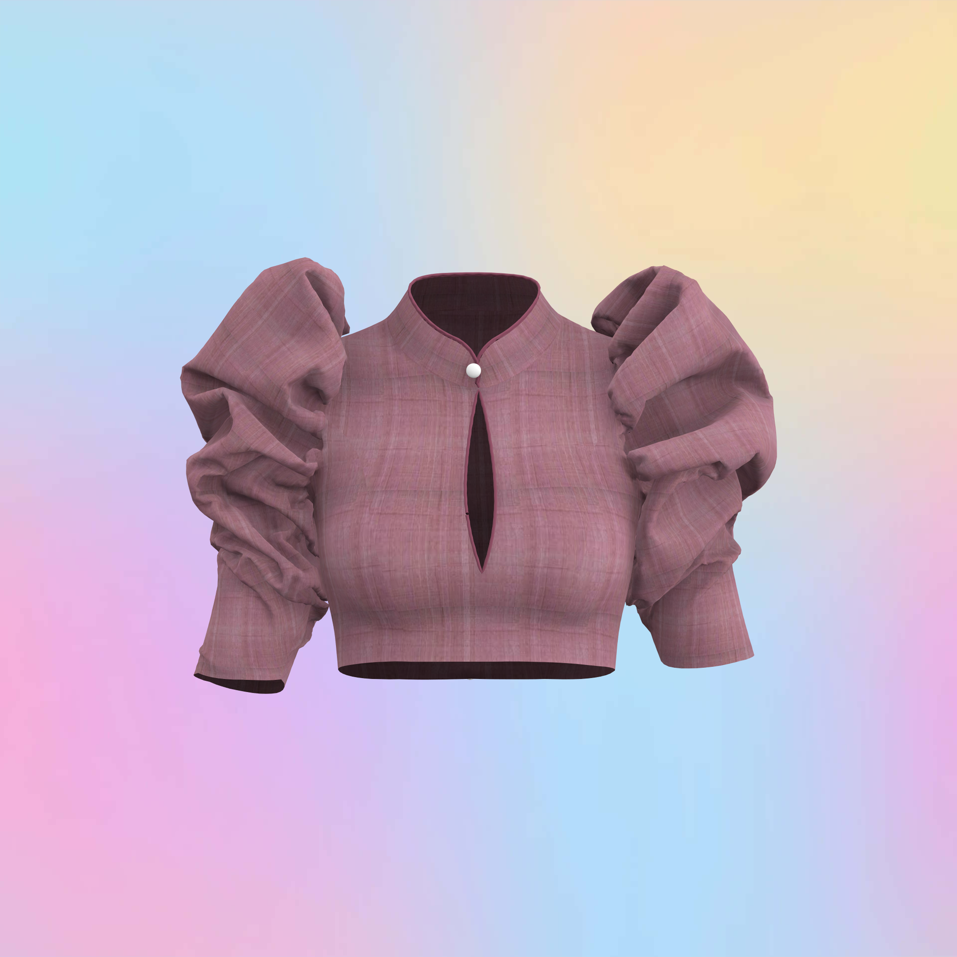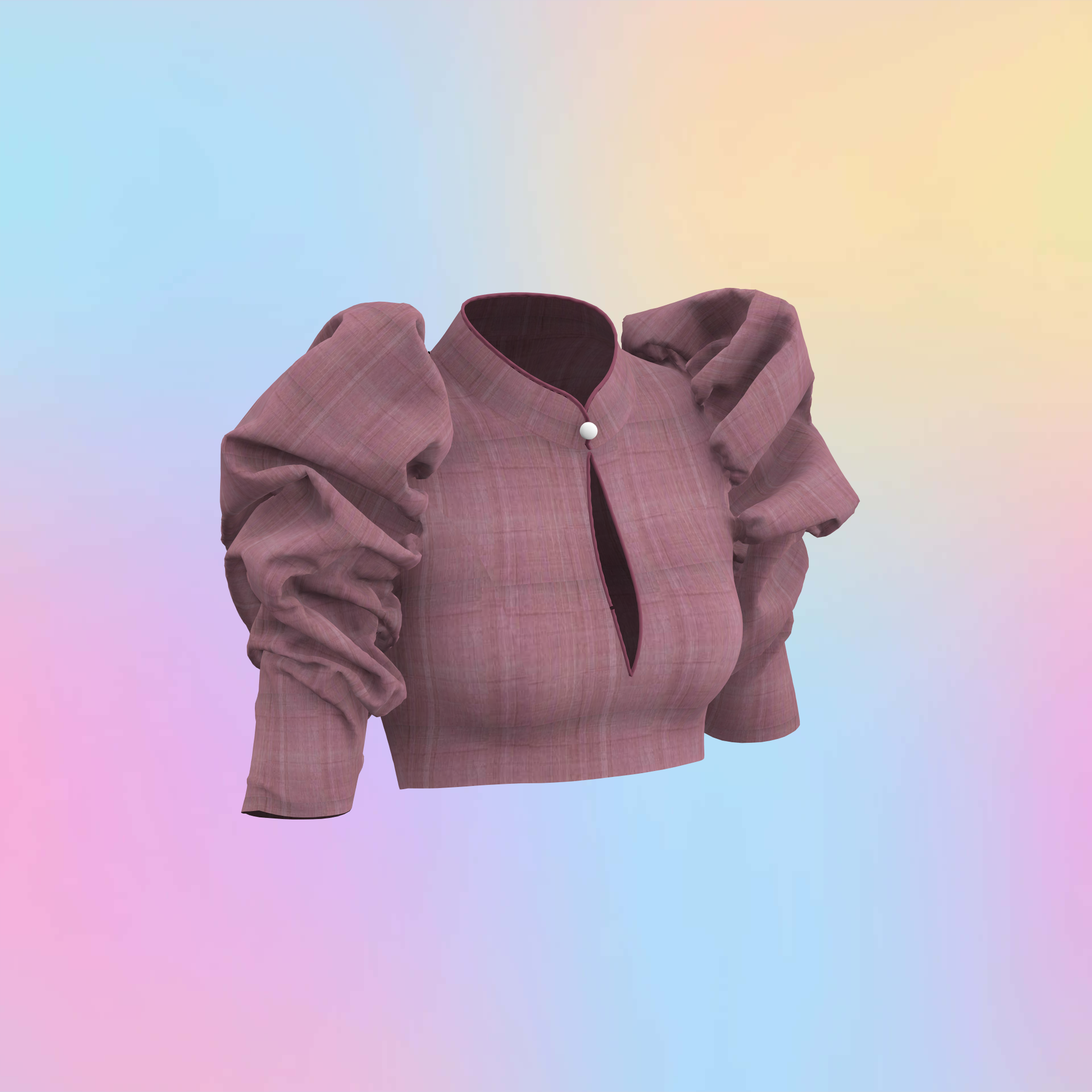 Sculpted Sleeves With High Neck Blouse-CBL069(Stitching Service)