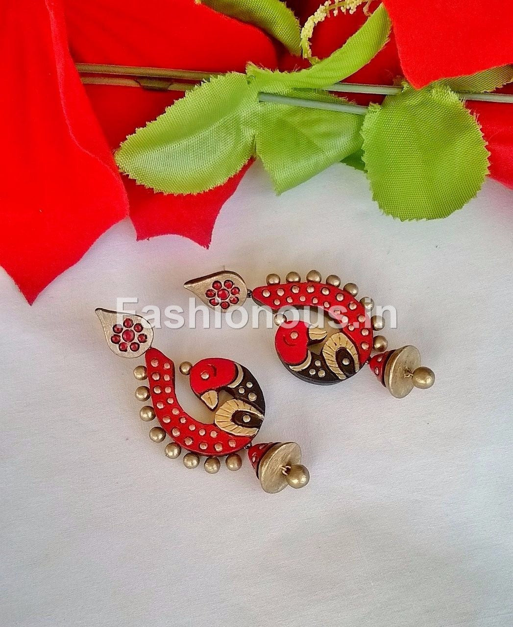 Red and Black Peacock Terracotta Jhumka
