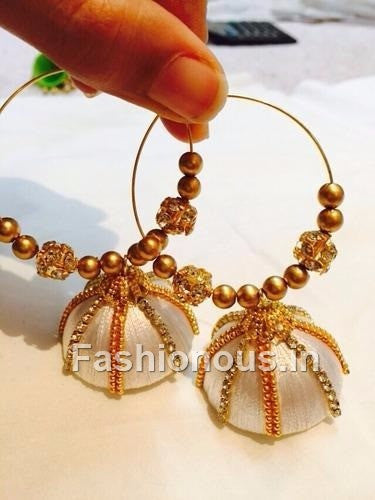 White Designer Silk Thread Hoops